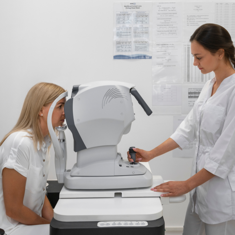 En nuestra óptica contamos con tecnología de vanguardia para brindarte un diagnóstico visual preciso y rápido. Utilizamos un autorefractor, un equipo especializado que mide automáticamente los errores de refracción de tus ojos, como miopía, hipermetropía y astigmatismo.